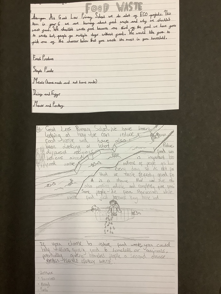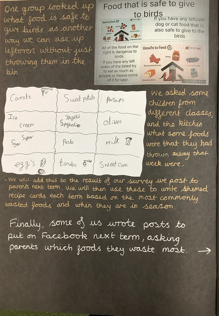 Our environmental project for Year 6 is looking at how we can reduce waste. This includes food waste and everyday household objects. So far, we have collected vegetables from home which people are not going to use and made some delicious soup. We also run a 'Waste not, want not' stall occassionally on Friday afternoons, where we ask our community to bring in unwanted items from home. Children and adults can then take these pre-loved items home with them. Take a look at some of the pages from our floor book.