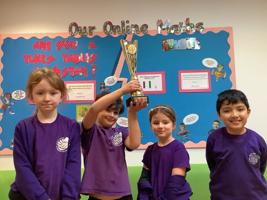 In November our Year 4 Times Table Team went to Phoenix Primary School to compete against five other schools in the Care Foundation Trust. The teams had to complete fast times tables challenges, colouring-by-times-tables questions and using the related division facts in a timed contest too. The competition was close and came down to a tie-breaker round where the children had to use a spiral of times table questions to win. After all that, our amazing team won! This week the trophy arrived and the team were able to celebrate properly in front of the whole school! Well done to you all, you represented Goat Lees so well and under such pressure. What a great team!