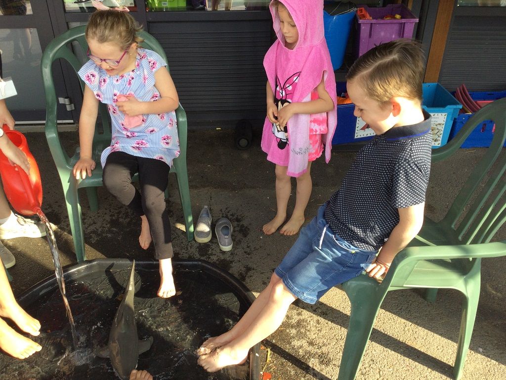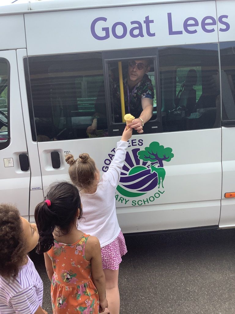 To start off our seaside theme in English and Topic, Angora and Alpine Classes enjoyed a brilliant day 'by the seaside' in our school playground and field. The children were able to dive into water, paddle with sharks, build sandcastles and play volleyball too. They all enjoyed a delicious ice-cream served from the Goat Lees Ice Cream Van as well! This exciting day will help to inspire our children in their writing and help them to describe the seas, oceans and coasts they come across in Topic work too! Thanks to all of our brilliant children and families for coming in dressed in their best beach gear, and to all of the Key Stage 1 staff for organising this brilliant day!
