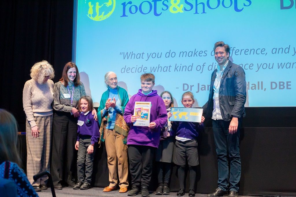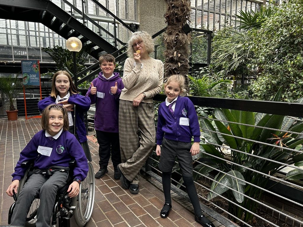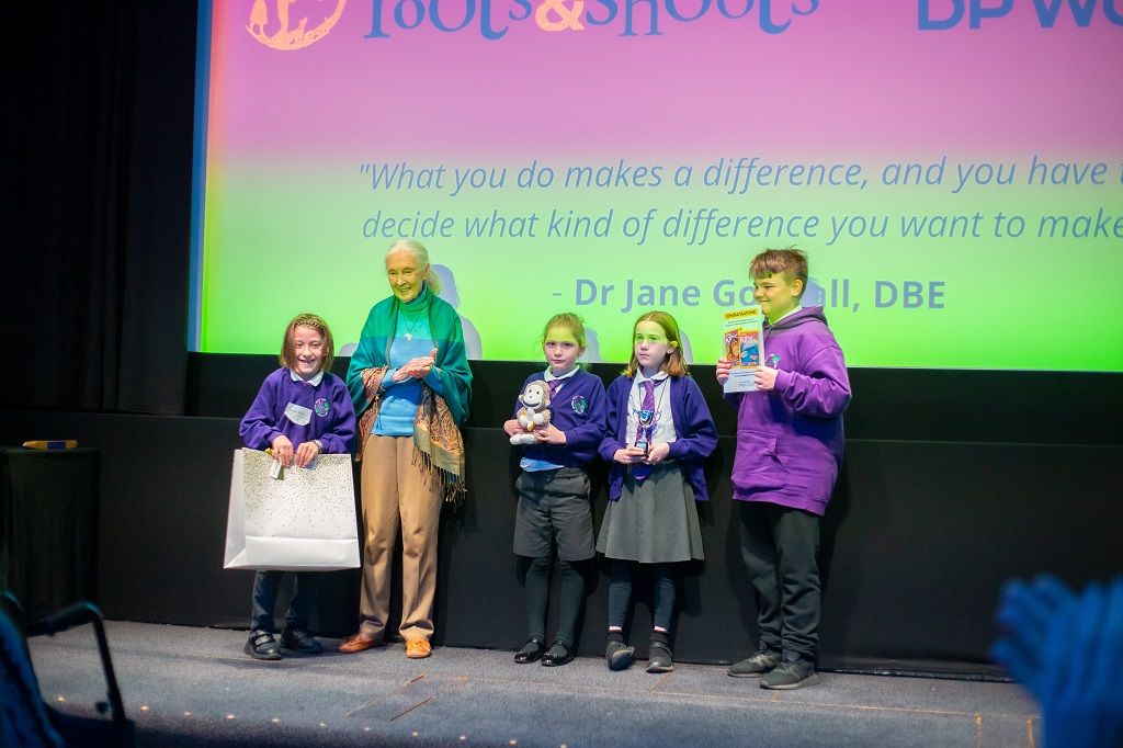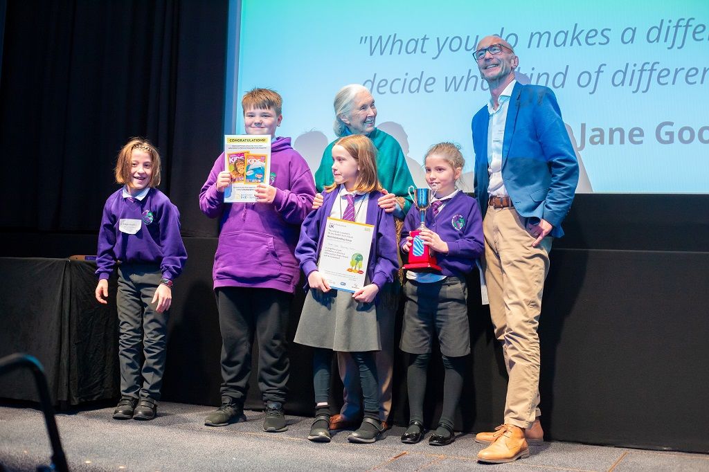 This year, we had the amazing news that we had been chosen to be one of the nine schools selected to be part of the Jane Goodall, Roots & Shoots Awards, 2023 held at the Barbican in London. To be one of the chosen schools, was a huge achievement as there are well over 1000 schools in the UK alone who are part of this education programme. On 3rd March, four lucky children who take part in all things environmental in school, joined two members of staff to travel up to the awards ceremony. After a long but fun journey, we found our way to the venue, set up our display and then spent the morning discussing our projects and campaigns to everything who visited our stand (Aquasmart - saving water, Recyclabots and EMR - recycling scrap metal, The Ironman - upcycling crisp packets, (Pre)Loved Clothes Sale - reducing clothes into landfill, Green Tree School Status - planting trees, Toilet Twinning Scheme - raising funds to build toilets in Uganda & Mawali, SwitchOff Fortnight - saving energy, and then achieving our Eco School Green Flag status with Distinctions). The children did a fantastic job; eagerly explaining to every visitor about all the exciting things we have achieved, present and past. We also had the great honour of having a visit from Dr Jane Goodall, who was extremely interested in what we had been doing and spent time talking to all the staff and children to find out more. Then it was time for the award ceremony itself. First, we received our trophy, alongside all the other schools, for being chosen for the Roots & Shoots Awards which was very exciting as the prizes were handed out by Dr Jane Goodall, herself. Then came the prizes for the Action Climate: Race to Zero Award where The Do Schools sponsored three prizes of £1,500 and we were one of the lucky schools to receive one of these prizes. Whilst we were getting over this completely unexpected accolade, we found out we had also won the overall 'Most Outstanding Group' Award sponsored by the RSPCA - we were overjoyed but in shock! What a fabulous day and well done to the children for their hard work!