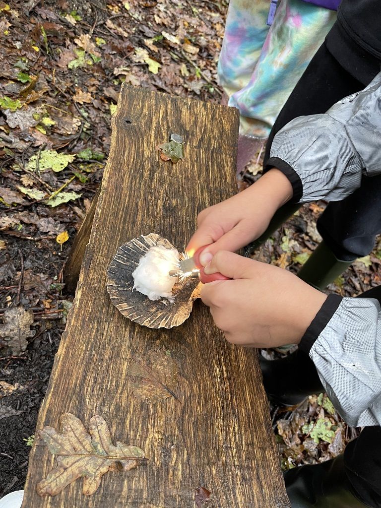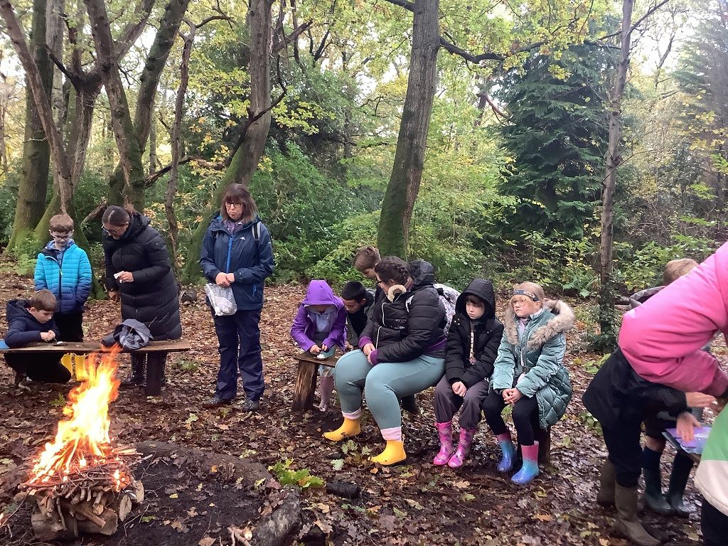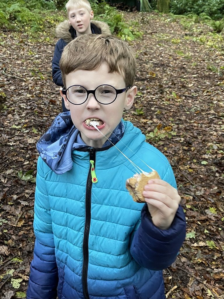 We learnt about the work the RSPCA does before having our packed lunches and hoping that the weather cleared up for the afternoon. Luckily, the weather held off so we could head off on a trail through some beautiful woodland. We were all glad for the wellies though as it was rather muddy. The children loved splashing in the puddles and they spotted lots of different fungi species. We arrived at a glade where we did some shelter building and fire lighting before toasting marshmallows to make s'mores.