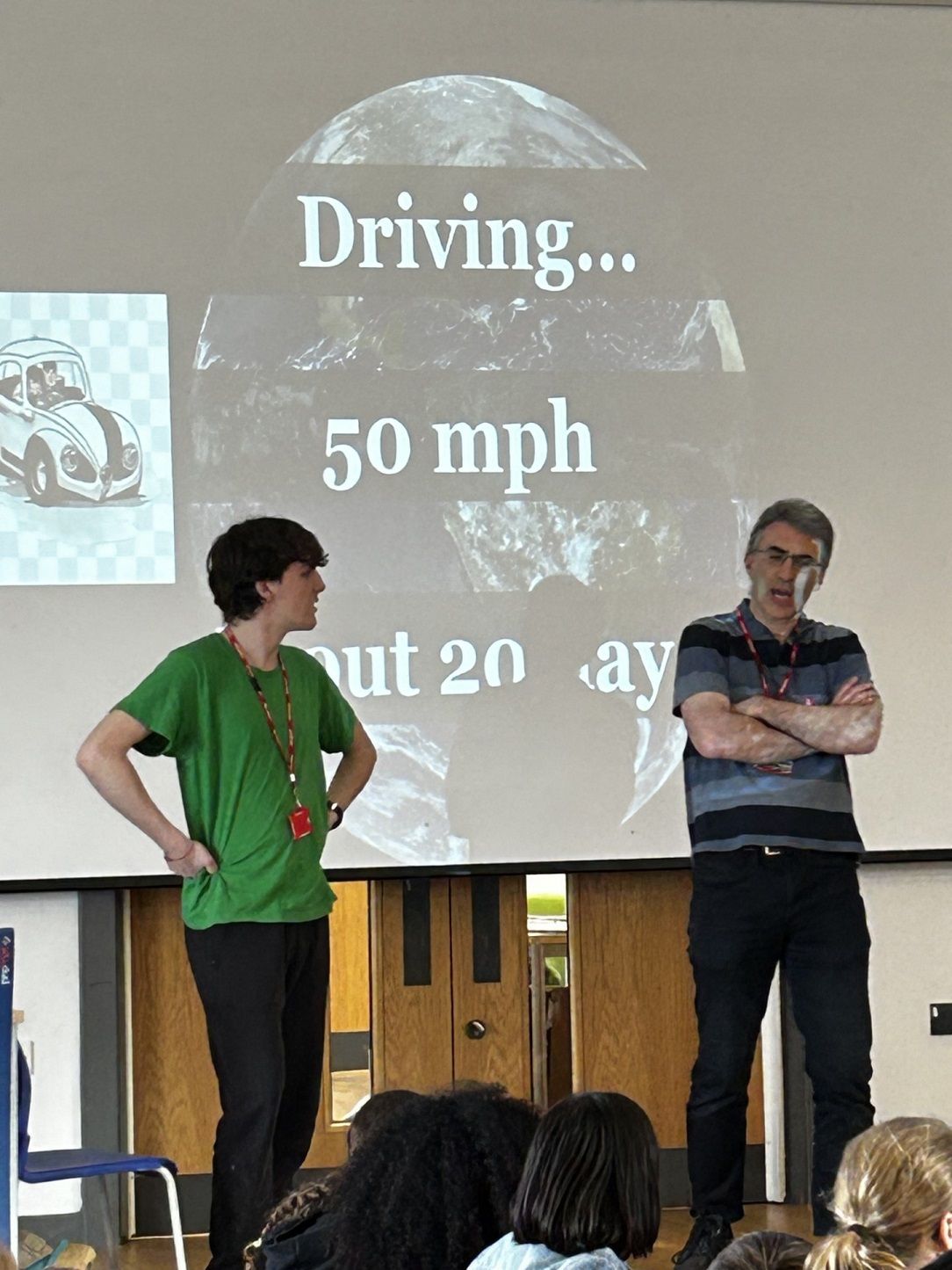 Mr Beck and Dan came into school during Science week and got us very excited about travel. We explored how long it would take to walk, cycle, drive, fly around the world. We even spoke about the speed of light.