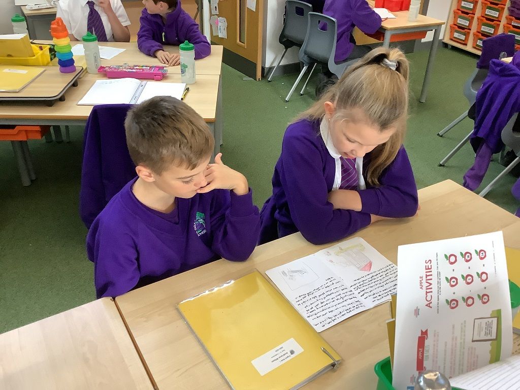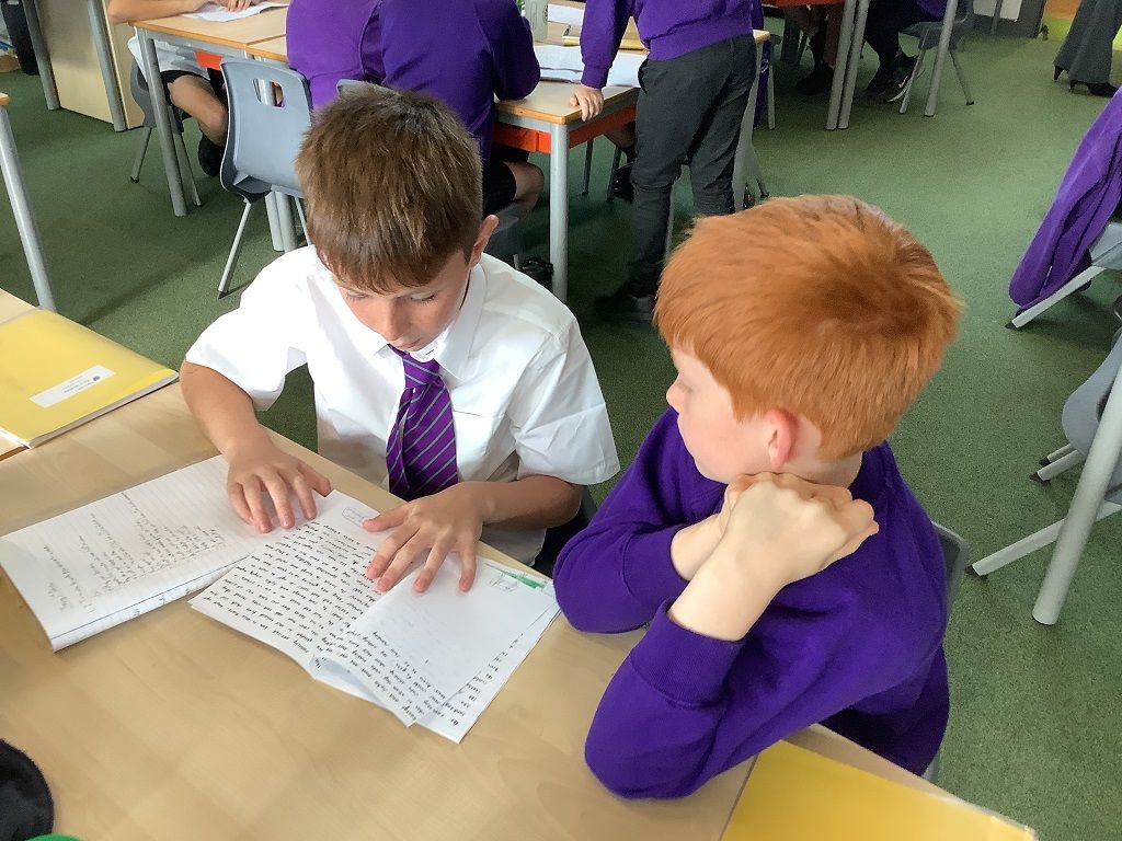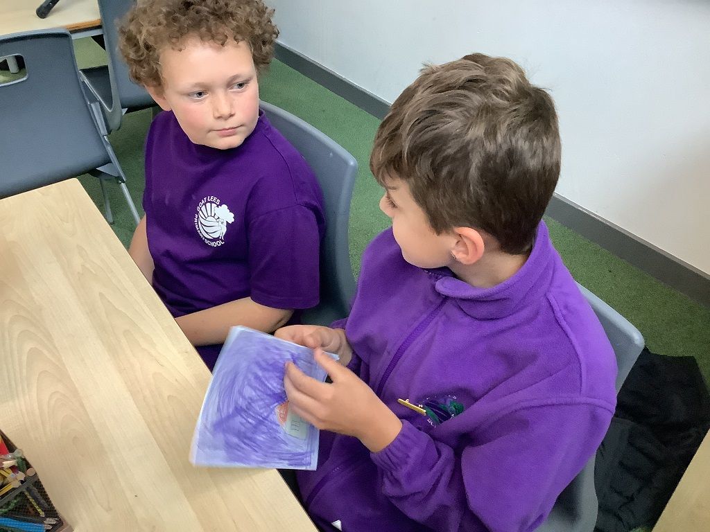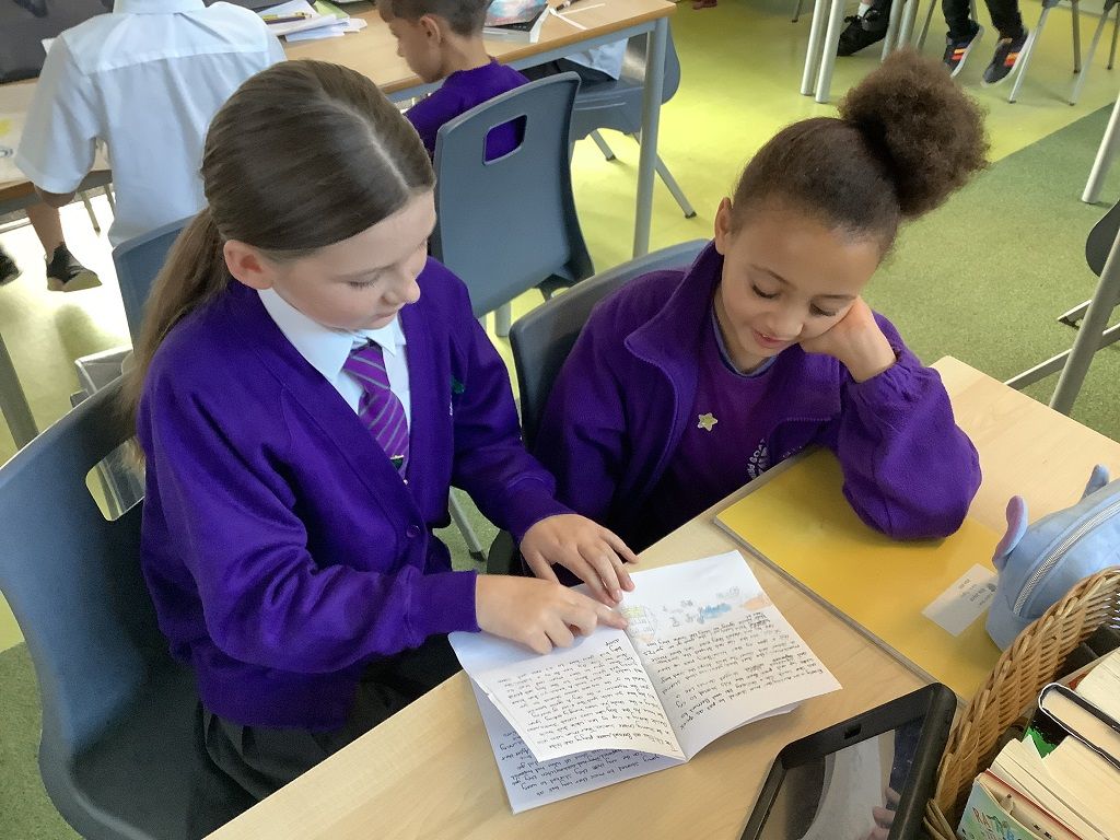 For our longer pieces of writing, we try to ensure a purpose for the children's writing. This might be for display, to share their work with other children and adults, or even to send their work to someone. This term, Year 6 have written and published their own story books based on the book 'Flood'  by Alvaro Villa. The children knew they would be sharing this story with the children in Year 4. It was lovely to see the Year 4 children so engrossed with their stories and Year 6 being very proud of their achievements.