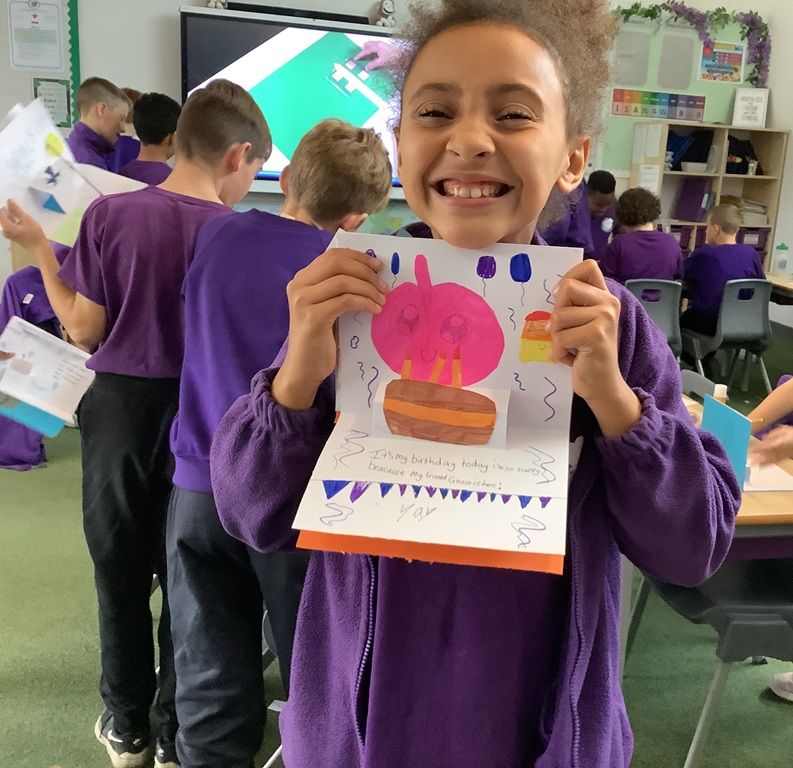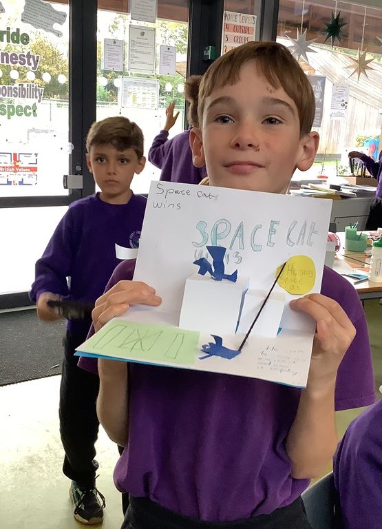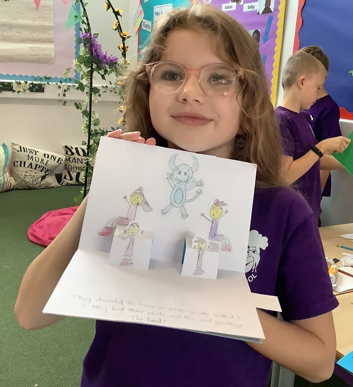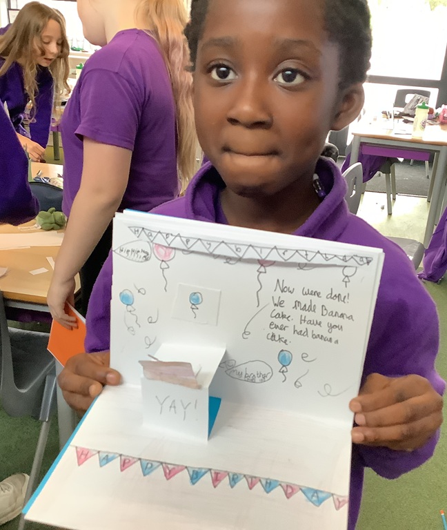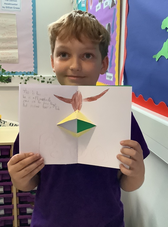 As part of our DT lessons, we designed and made pop up books which we then gave to our friends in Billy Class: after reading it to them of course!